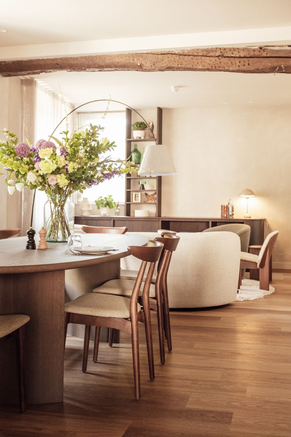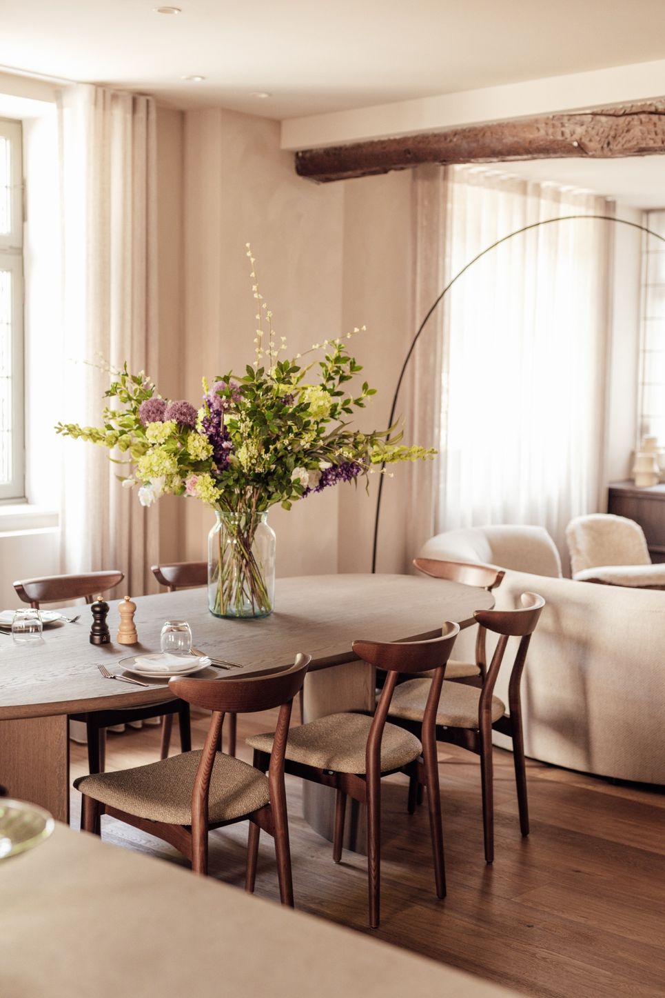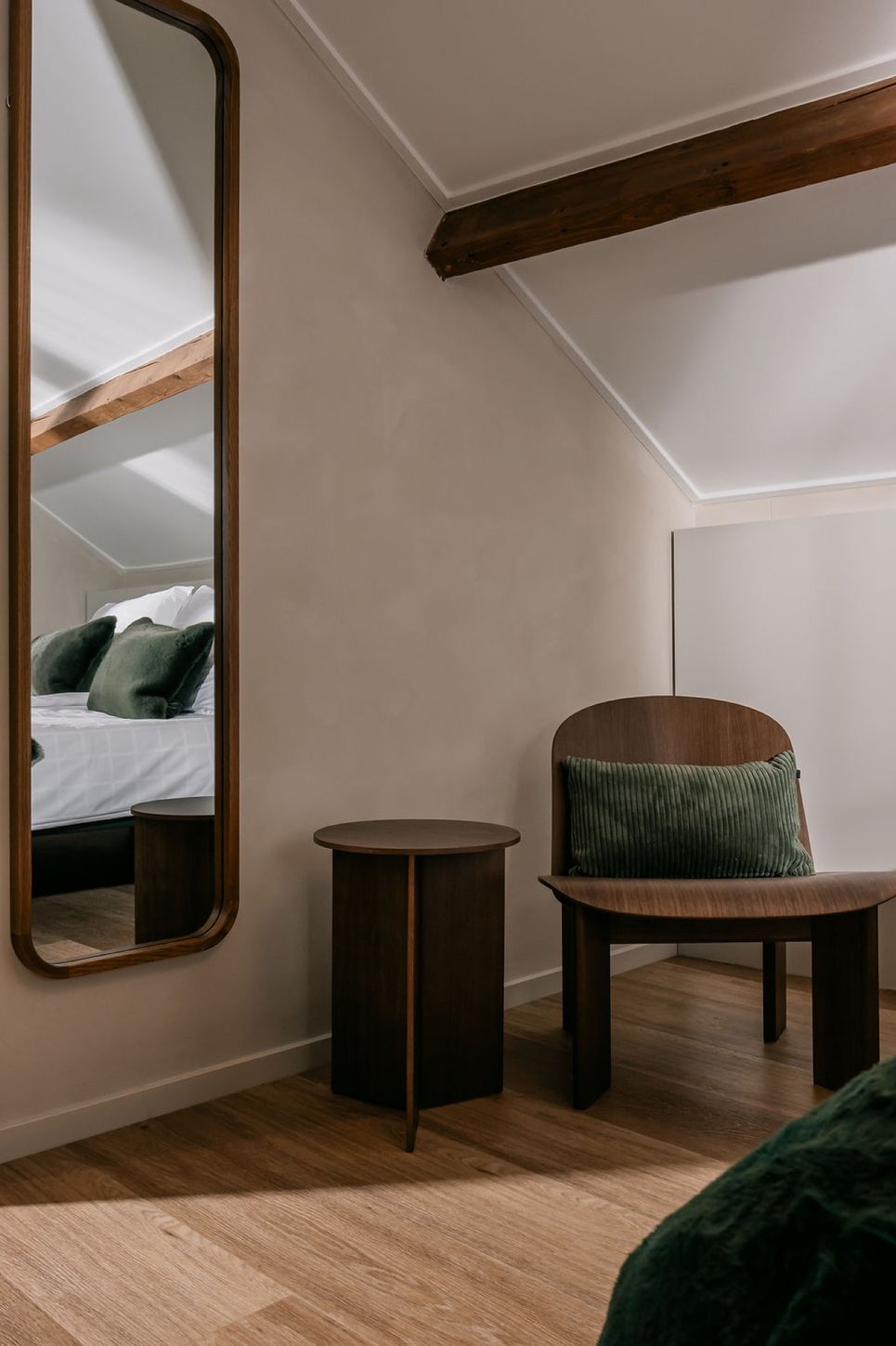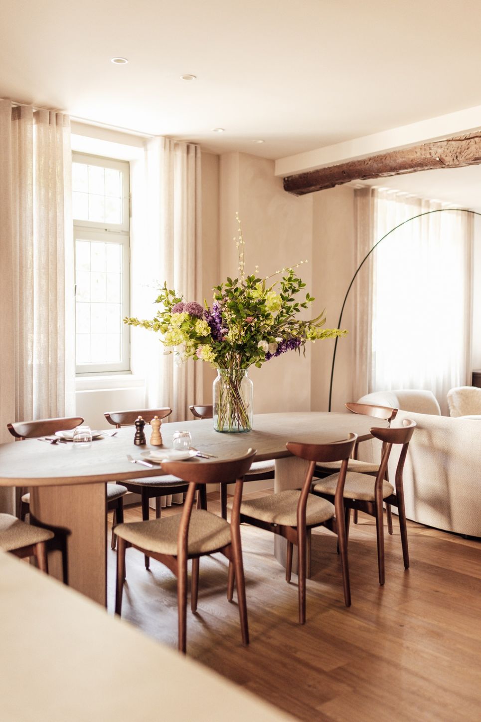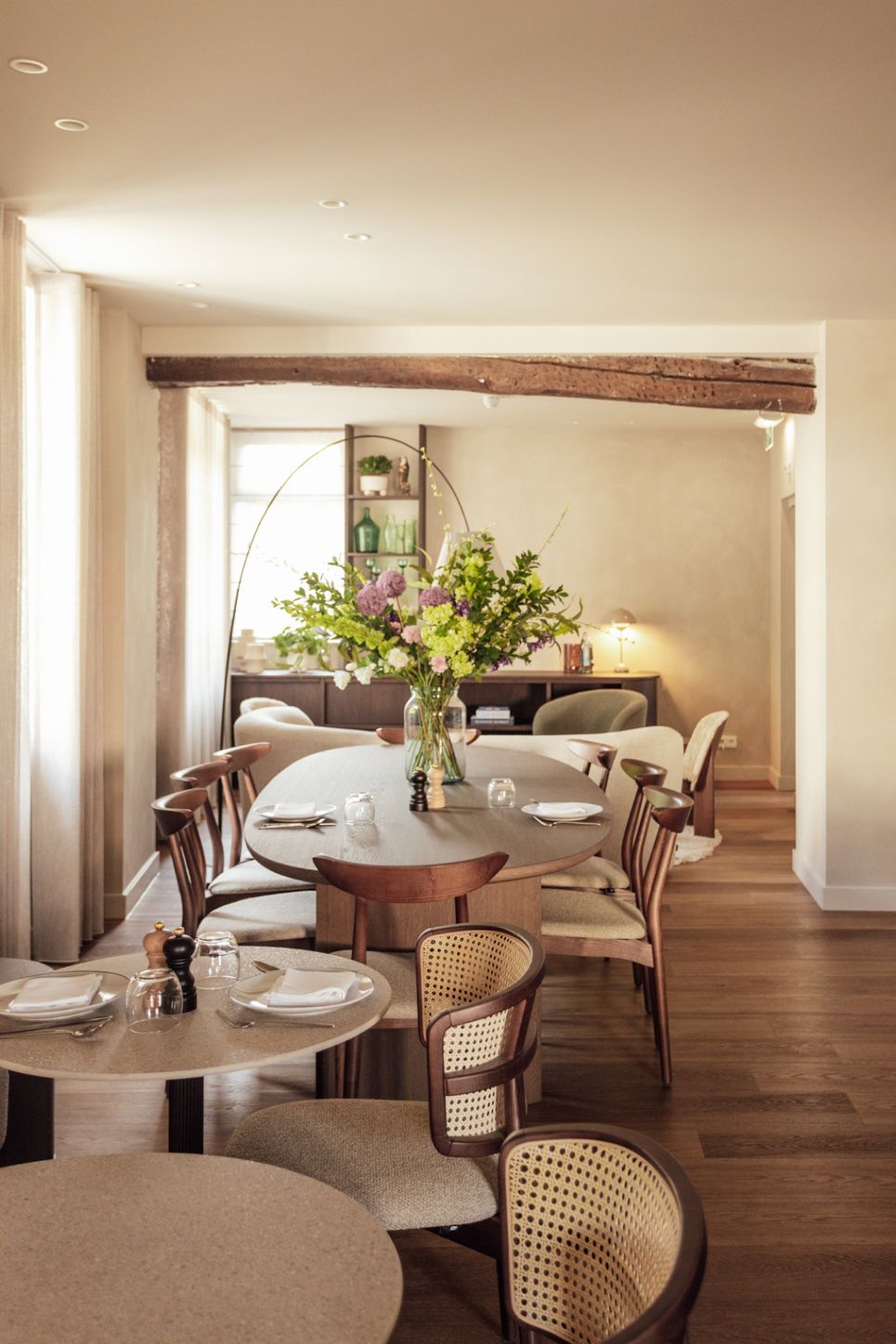 Samen met vertrouwde partners verzorgde Dols de inrichting van zeven kamers en de ontbijtruimte met gemeenschappelijke zithoek. Het project omvatte de volledige aanpak: van vloer- en wandkeuzes, verlichting, raambekleding en los meubilair tot maatwerk, zoals een uitnodigende zitbank en de gezellige ontbijtkeuken. Authentieke elementen bleven bewaard, terwijl eigentijdse meubels en maatwerk de ruimtes een verfijnde uitstraling geven. Zo ontstaat een subtiele dialoog tussen verleden en heden, waarin historie voelbaar blijft en gasten zich direct welkom voelen.